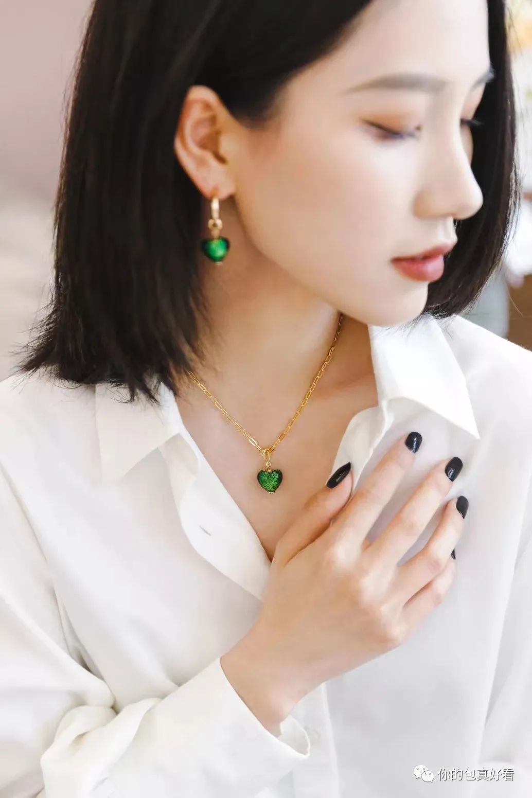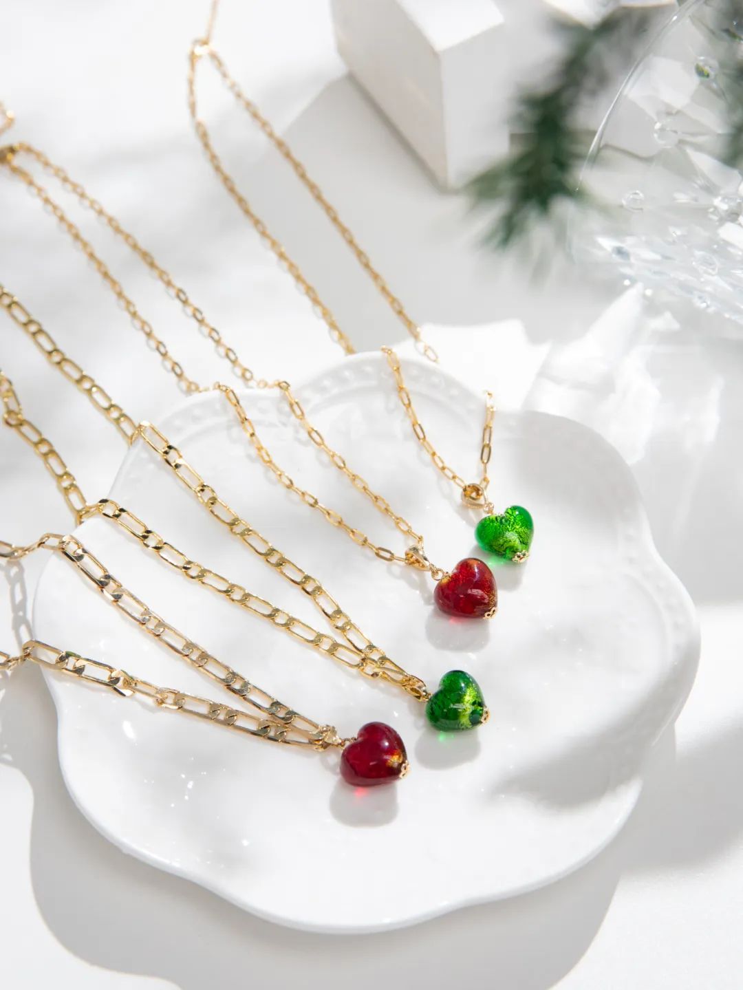 晶莹剔透的爱心吊坠,是不是超级美?!凑近点能看到里面有金箔点缀。