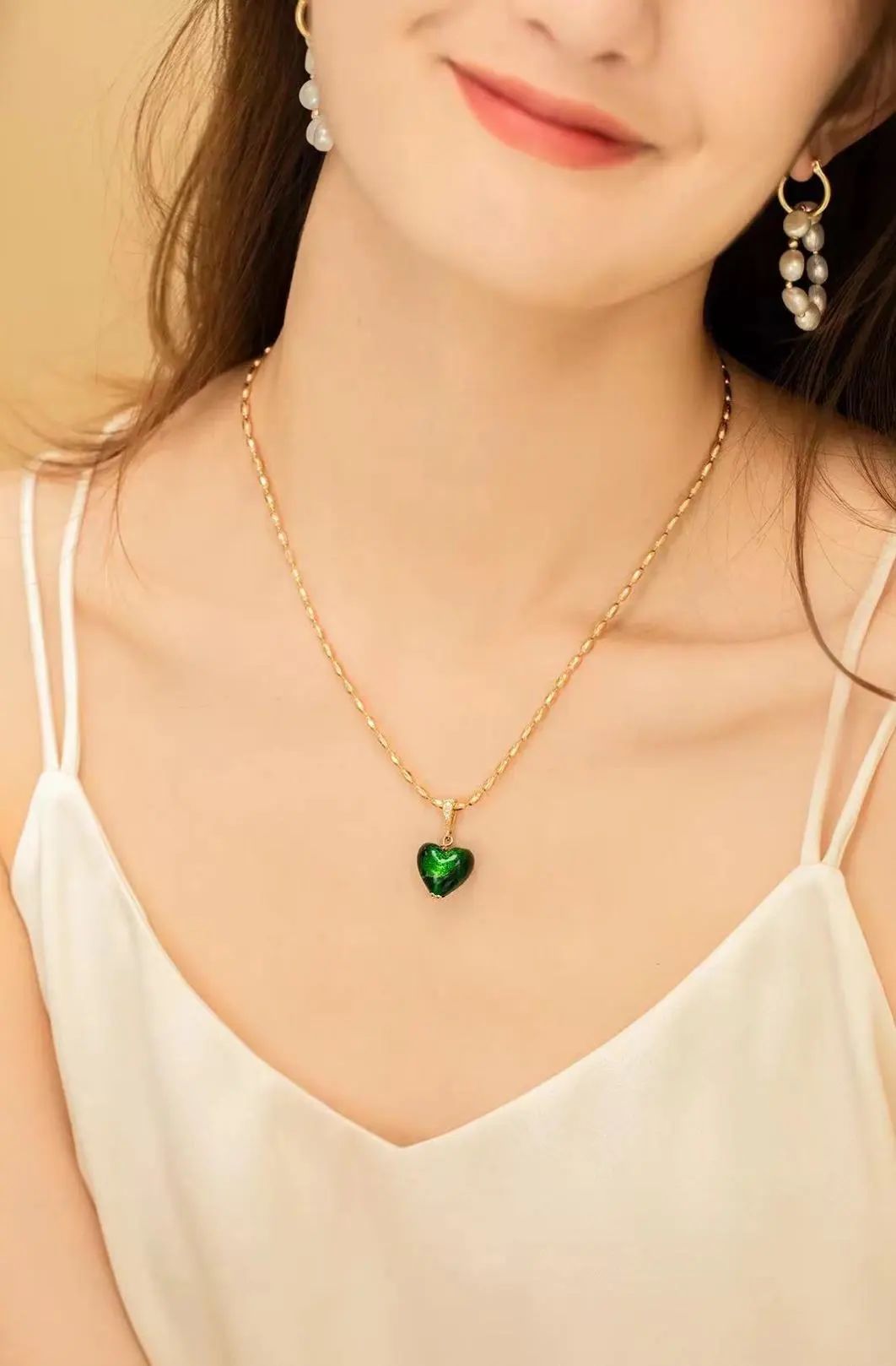 我这款是扁细链条,18k镀金材质,光泽度很好但又不过于张扬。链条的酷和爱心吊坠的浪漫太戳我了!“酷”和“浪漫”看似矛盾的两个词,居然混搭起来毫不违和。