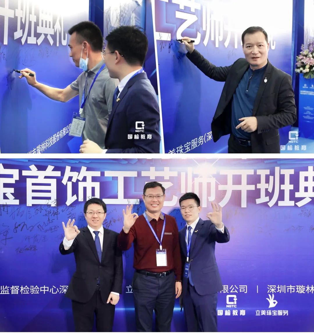 因此在本次珠宝首饰工艺师开班启动仪式上,我们也有幸获得了深圳市罗湖区工业和信息化局副局长马瑛女士,深圳市黄金珠宝首饰行业协会秘书长郭晓飞先生,北京服装学院首饰设计专业教授、世界技能大赛珠宝加工项目中国赛区总裁判长邹宁馨先生,国家珠宝玉石质量监督检验中心(NGTC)深圳实验室主任丁汀女士 ,广东省珠宝玉石标准化技术委员会主任丁明贵先生,港福珠宝董事创始人陈金象先生,璇林科技创始人董事长袁换林先生,国家珠宝玉石质量监督检验中心(NGTC)深圳培训部主任徐军先生的支持,与港福珠宝总裁、立美珠宝服务创始人黄金远先生一起启动,并共同见证了国内首个珠宝首饰工艺师培训班正式开班的盛大启幕!相信,在多方的共同努力下,珠宝职业教育势必会迎来高质量发展新征程。