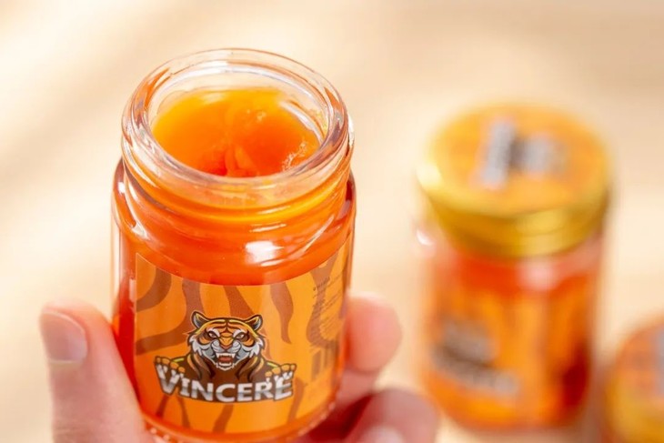 老虎膏是橘红色的精油状,膏体细腻,一抹就化开,淡淡的中草药味,闻起来满满的治愈感~
