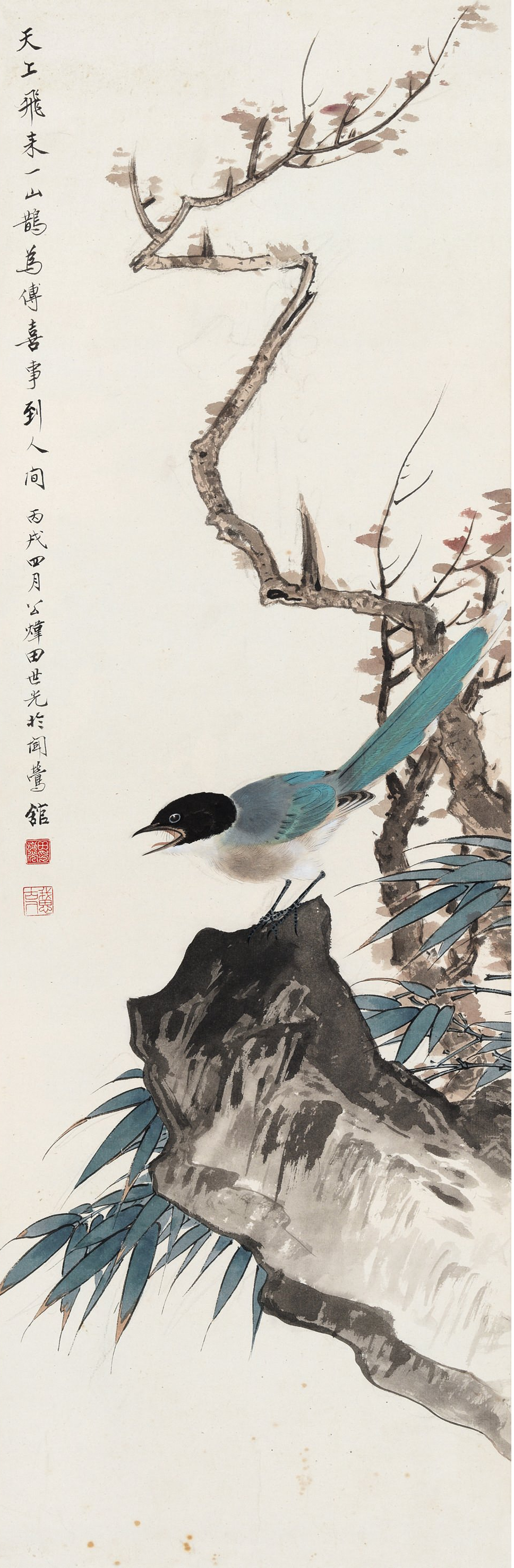 (三)天上飞来一山鹊,为传喜事到人间。丙戌四月,公炜田世光于闻莺馆。