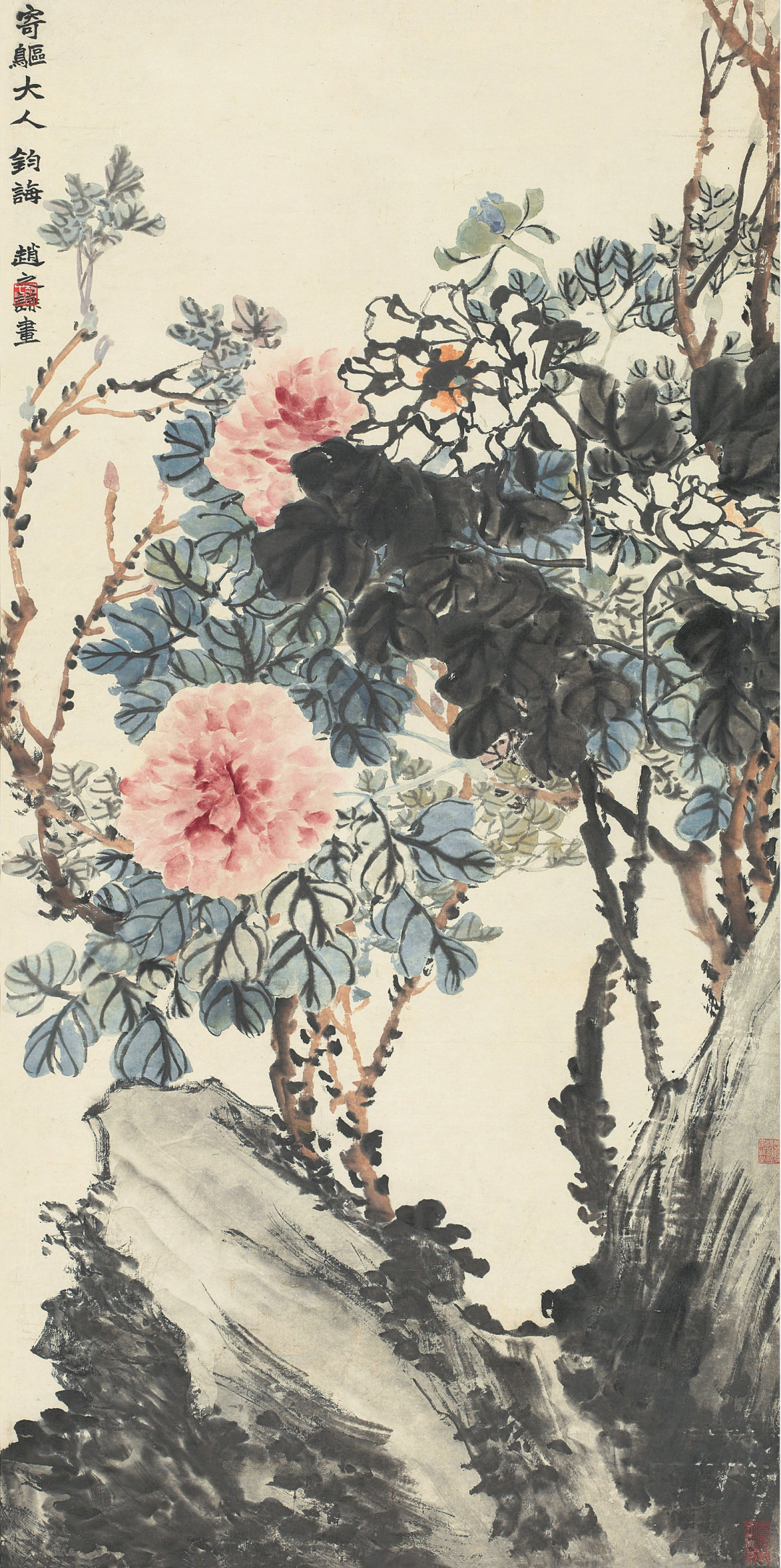 在技法上,赵之谦运用金石笔法勾勒花卉形态,线条粗犷而富有力量感,设色浓艳而不失清新,既有文人画的雅致,又不失民间艺术的活泼与生动。他巧妙地将书法中的金石气融入绘画之中,使得画作不仅具有视觉上的冲击力,更蕴含了深厚的文化底蕴和独特的艺术韵味。