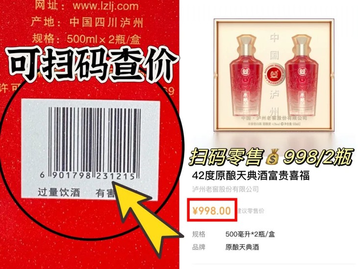 这样的品质好酒,扫码价要998元/2瓶。
