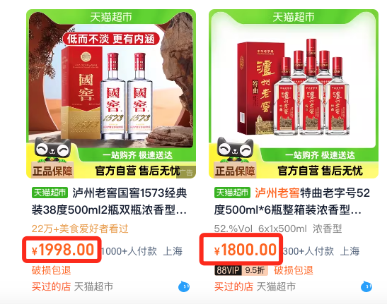 经典的泸州老窖基本价格在1000+,经常喝多少还是舍不得!