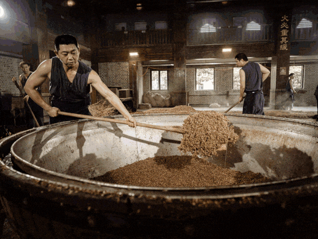 传承了700年的国家非物质文化遗产酿造技艺,起窖、拌料、上甑、出甑,制曲、摊晾、入窖、封窖……
