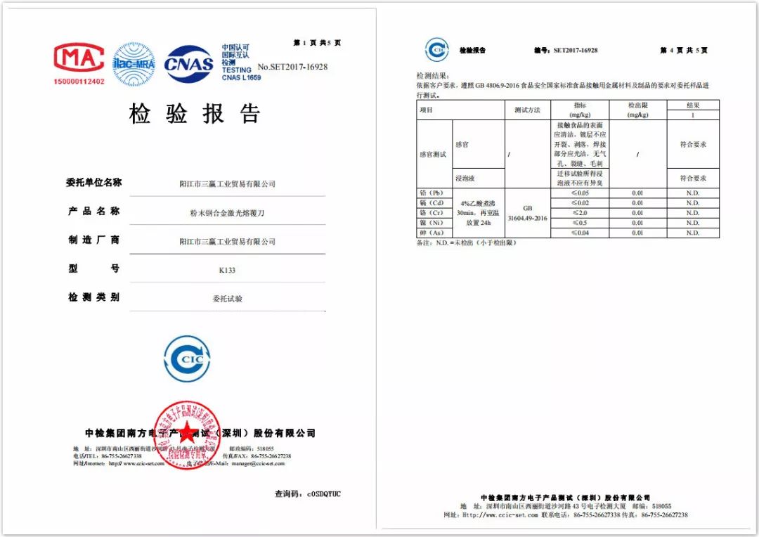 刀刃的粉末钢,经过国际标准的锋利度测试,无论是初始锋利度,还是持久锋利度(关乎刀刃使用寿命)都超欧盟标准。