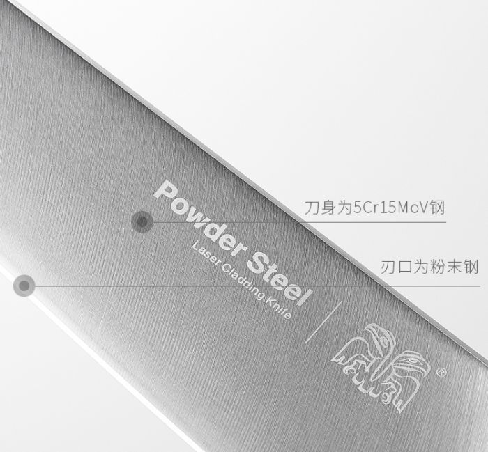 这款厨刀在刀刃上使用了世界领先的激光熔覆技术+粉末钢超级合金,拥有多项专利成果。