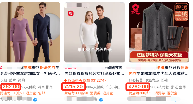 市面上随便一款成分只有羊毛和桑蚕丝,不含莱赛尔天丝的保暖内衣,一套价格少说也要200元左右!