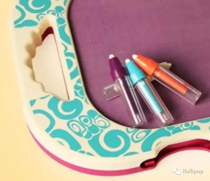 画板顶部和底部分别设有旋转水笔的笔架,宝宝的画笔不再无处安放。