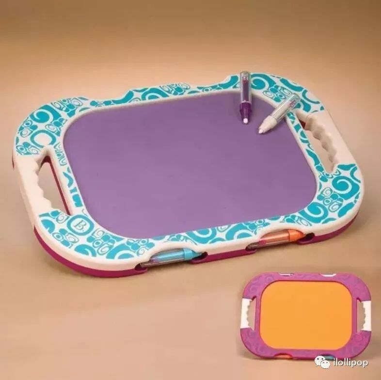 双面画板,2种背景色,可以让宝宝自由创作,无拘无束。随着画布上的水分蒸发,画面就会慢慢变淡褪去;当一面还没有干透时,可以换另一面作画。