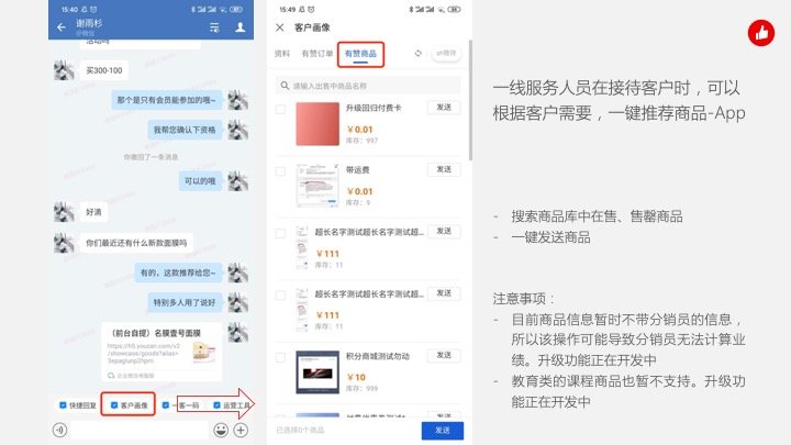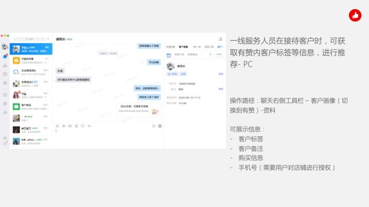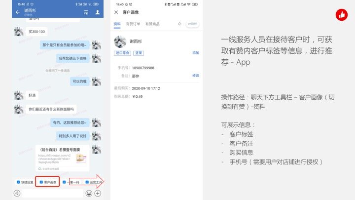 2.1 一线服务人员在接待客户时,可获取有赞内客户标签等信息,进行推荐