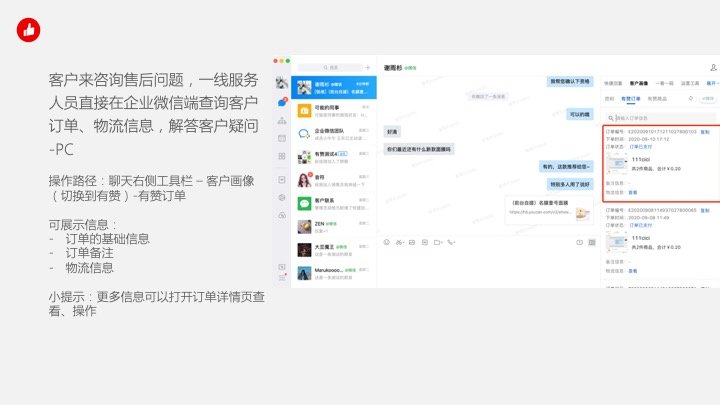 2.2 客户来咨询售后问题,一线服务人员直接在企业微信端查询客户订单、物流信息,解答客户疑问
