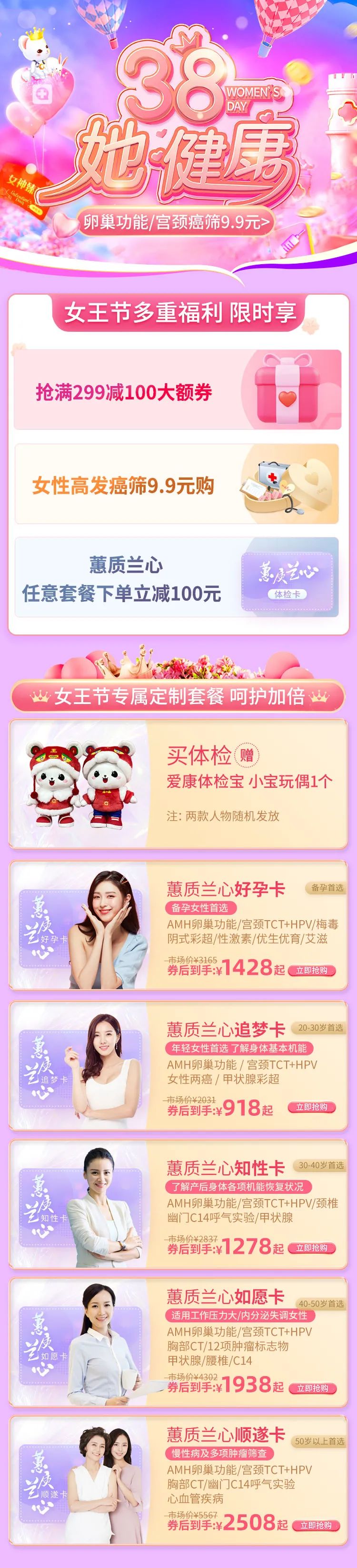 蕙质兰心追梦卡体检套餐包含常规基础检查项目、肝肾功能、血糖血脂、癌抗原、AMH卵巢功能、子宫附件彩超、乳腺彩超、甲状腺彩超、胸部正位、心电图等检查项目,关键的是未婚已婚女性通用且包含重点项目不同。