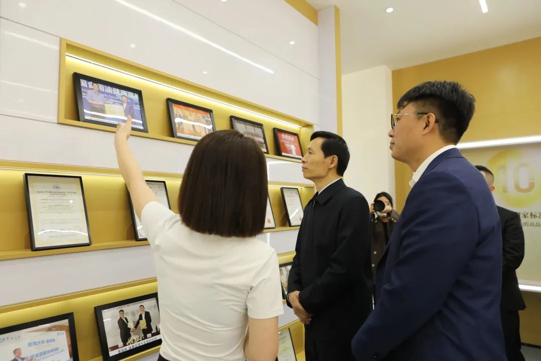 在善百年执行总裁陈凯的陪同和介绍下,张伦市长一行参观了善百年广州旗舰店,深入了解善百年二酯油的产业布局和二酯油的国内外发展历程,并在店内听取了善百年二酯油科研的最新汇报。随后,双方在善百年总部会议室举行了座谈会议,就菏泽市现代医药港投产合作事宜进行深入探讨和交流。