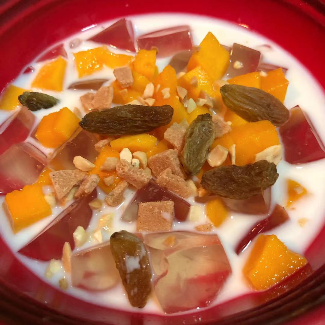 冰粉是夏天比较常见的一种美食,制作方法特别简单,加上喜欢的果酱、果仁、水果,更美味~