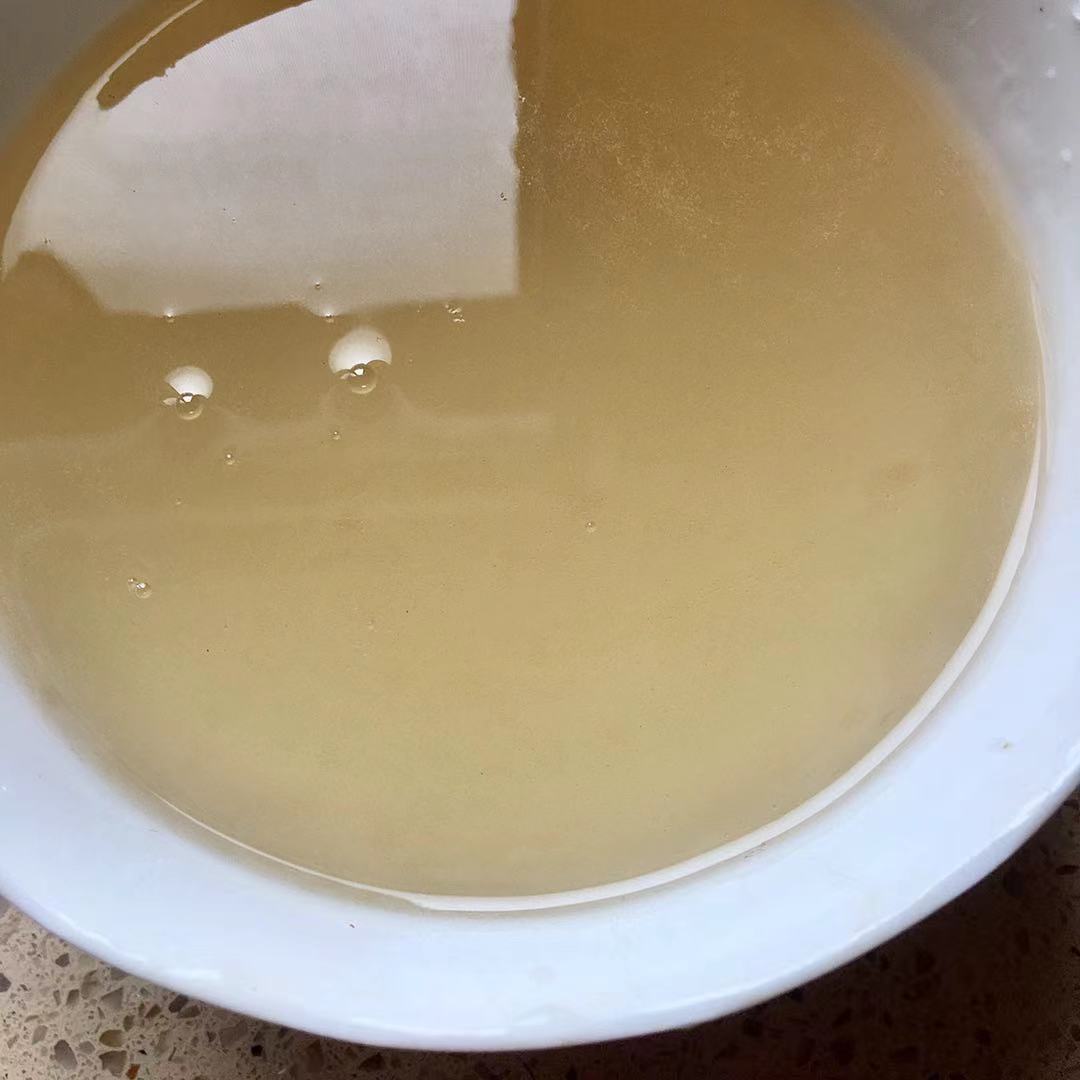 2.泡软不断用力挤压出足够的胶质,直至挤压时不见胶质从袋子涌出、肉眼可见水变色;