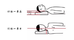 平躺时,枕头支撑头的地方的高度需要5-7cm,支撑脖子的高度需要3-5cm,也就是一个拳高的距离。