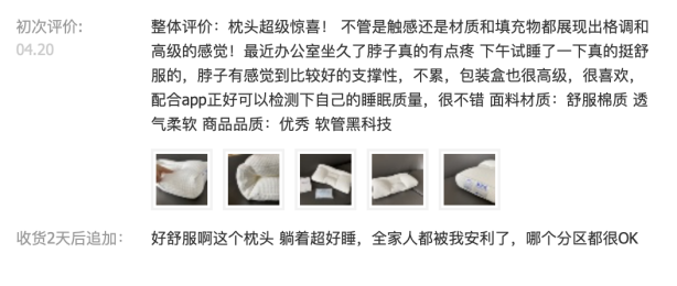 蓬松度高,枕起来十分柔软服帖,但不适合有轻微颈椎病的人群哦。
