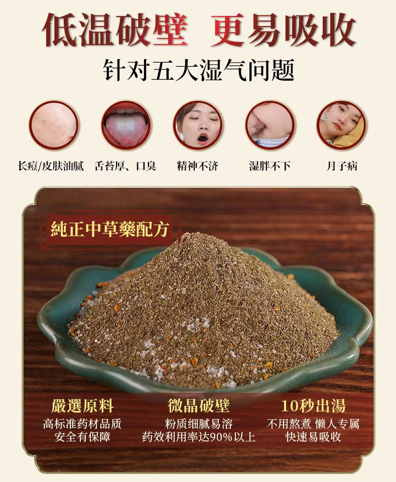 草本全部采摘自当季原产地,采用微晶破壁技术粉碎成粉,快速出汤,小分子吸收率高,更适合现代人体质。