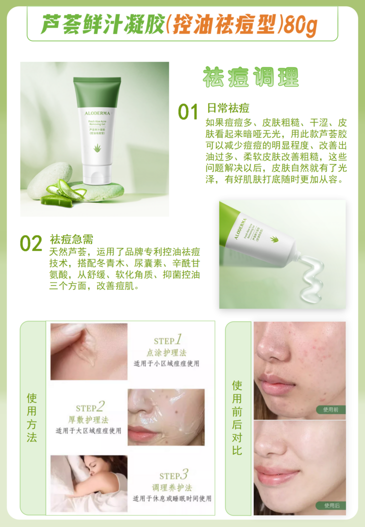 脸上总是长痘痘的姐妹,可以选这个专门为痘痘肌研发的芦荟鲜汁凝胶(控油祛痘型)80g