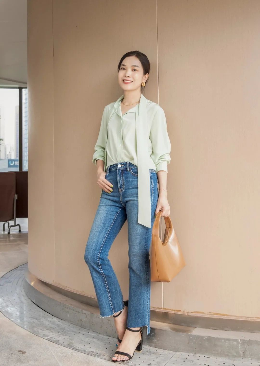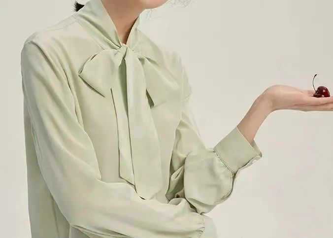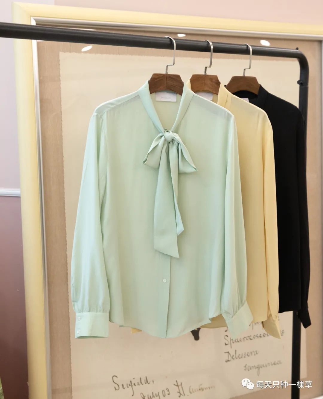 领口的飘带设计很实穿,实习生妹妹解锁了三种领带打法,上班时胸前打上蝴蝶结,金秘书既视感;约会的时候飘带当丝巾,留给背后小心机;度假干脆不系更慵懒随性,一衣多穿,四舍五入相当于省钱了。