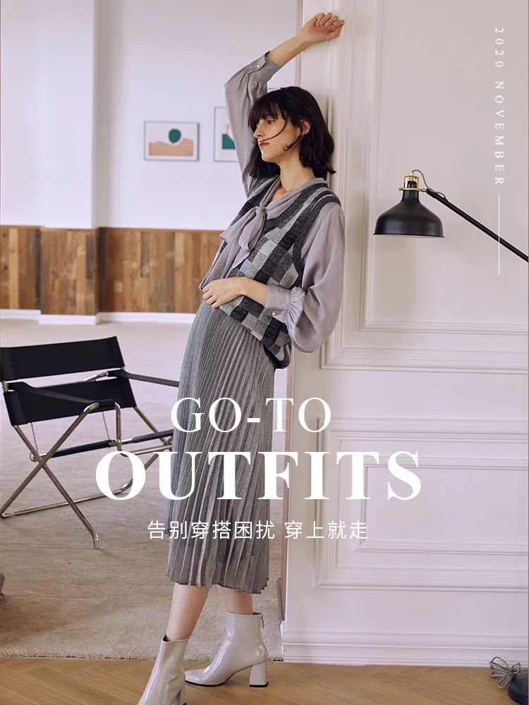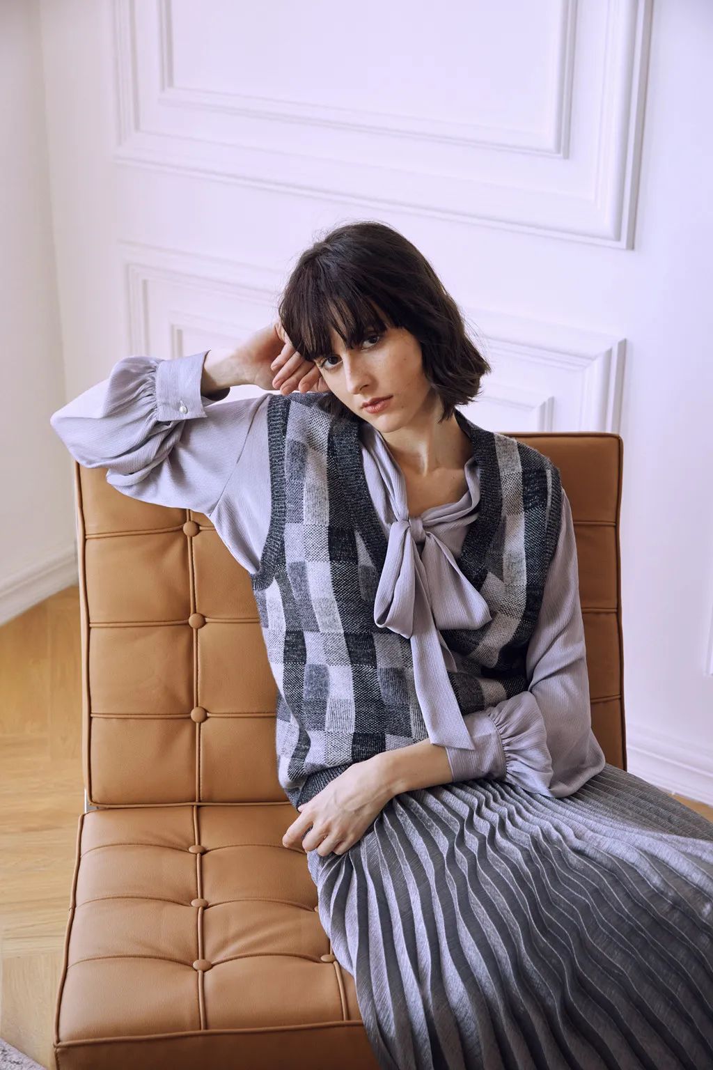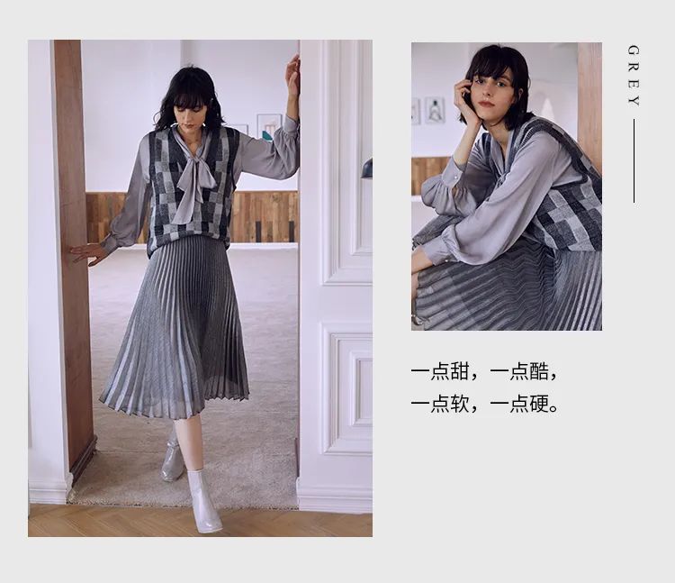 挺括有筋骨的羊绒背心,搭配飘逸浪漫的迷笛裙,