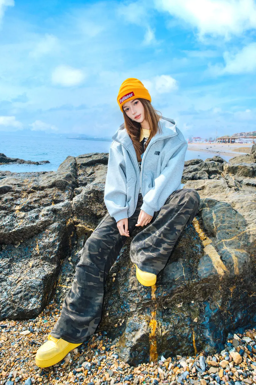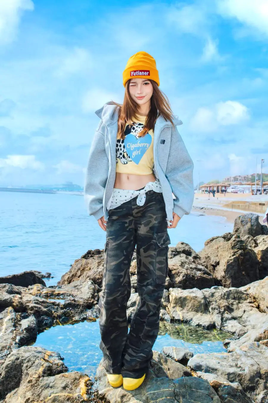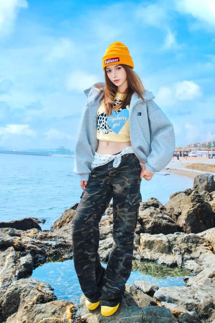 穿搭灵感| 灰色连帽卫衣+迷彩工装裤,酷飒感十足。