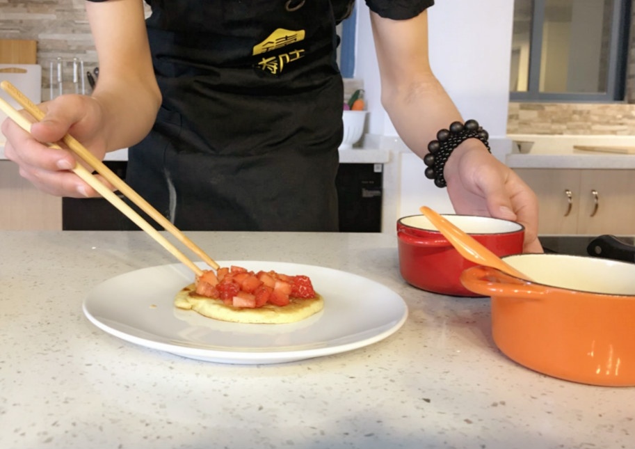 造型大家自己发挥,我是用了果酱和糖粉,再搭配草莓。