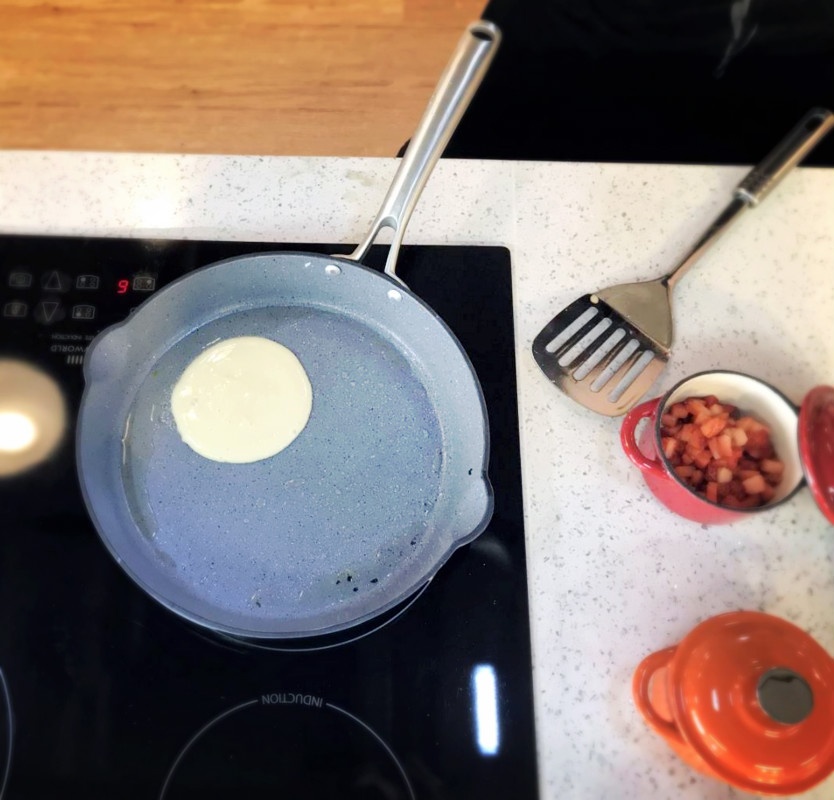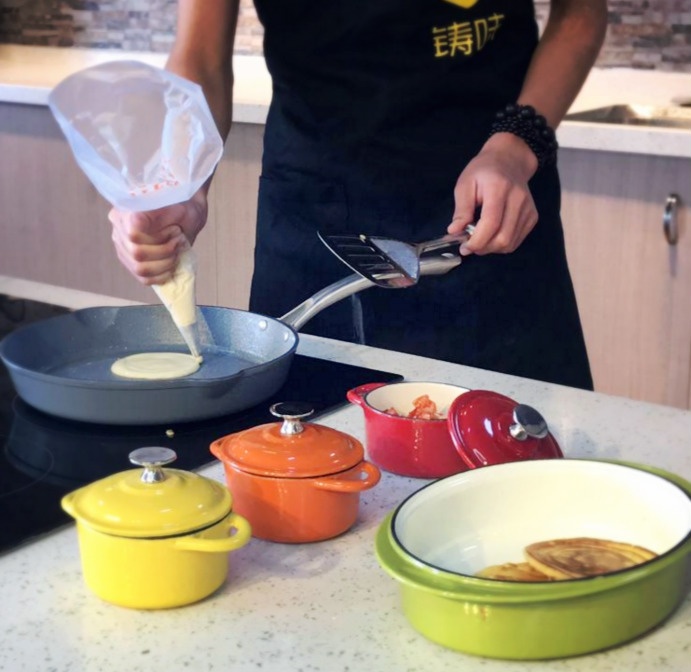 这次小甜品的制作,小铸用的是铸铁平底锅,