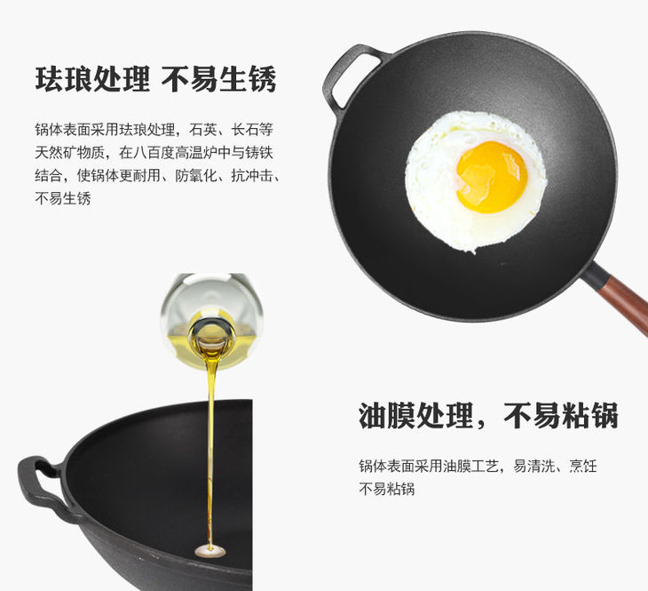 铸铁锅是铁铸造的,起码用起来也更安心。