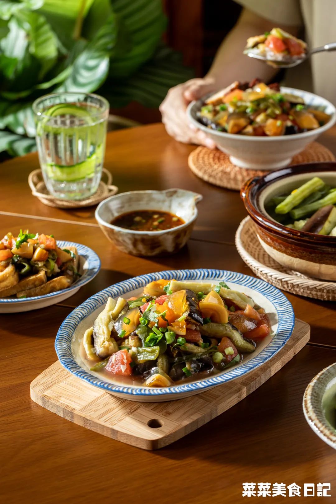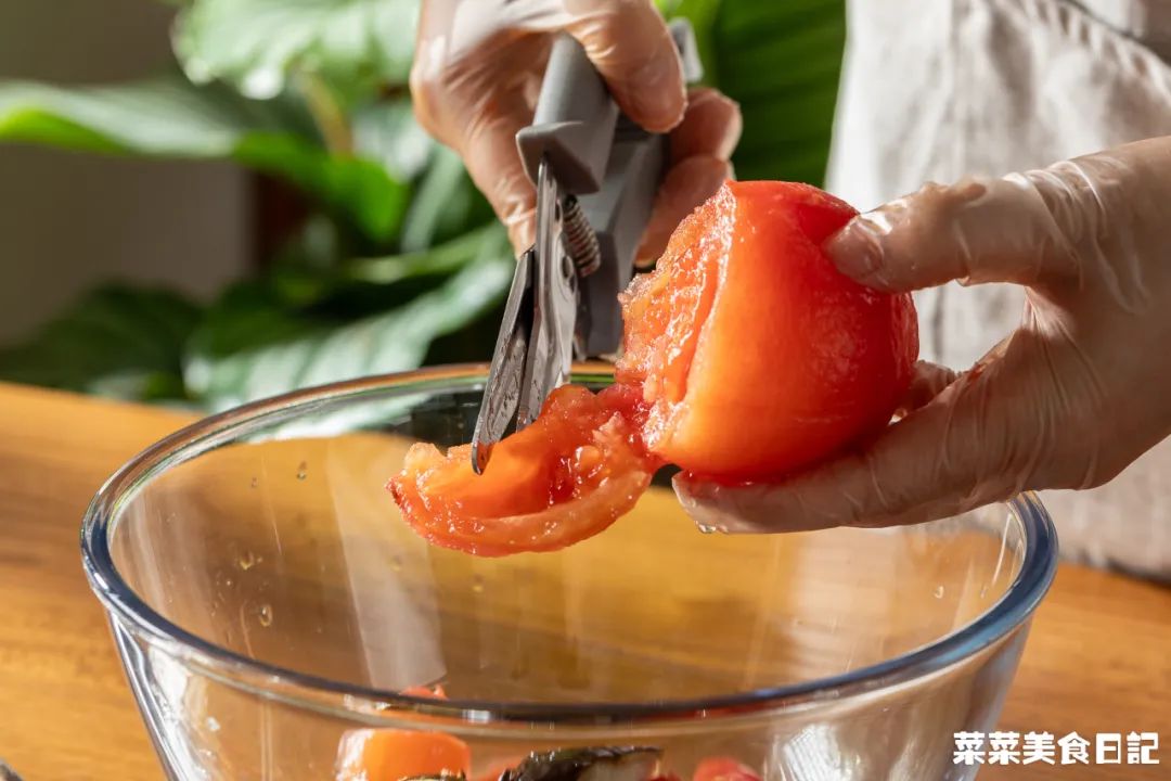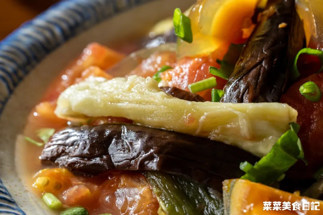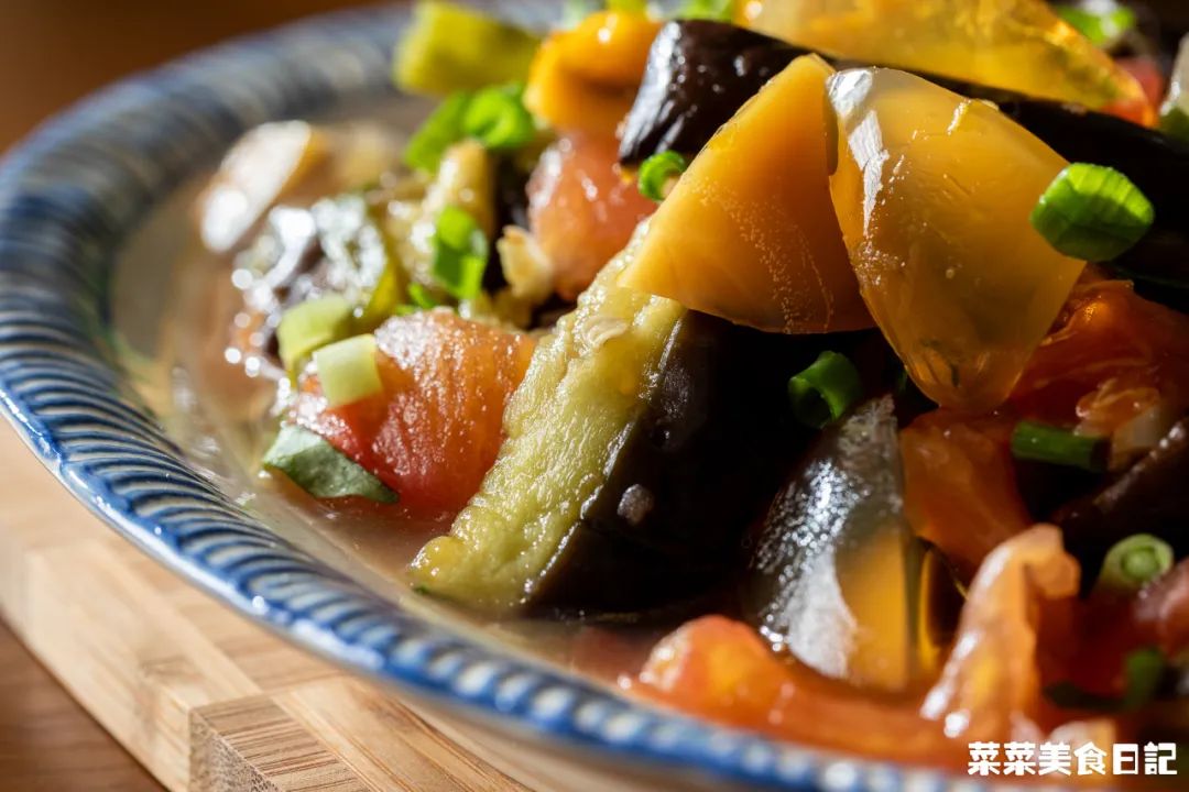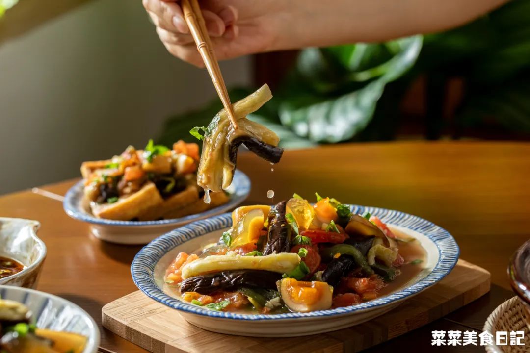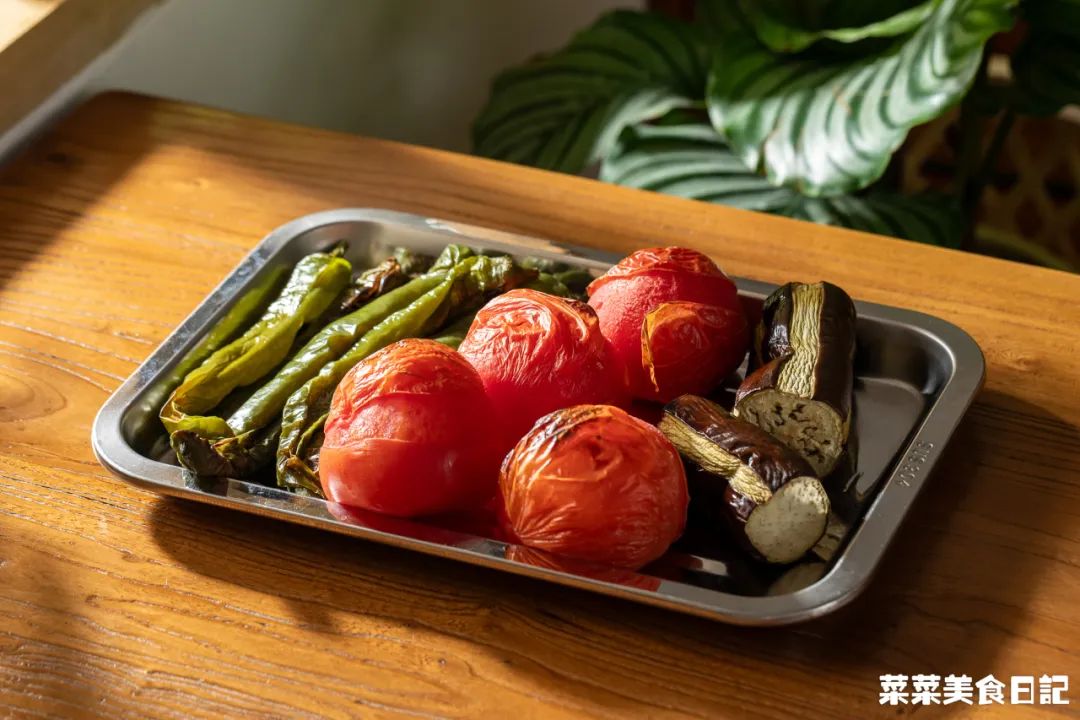 还有贵州蘸水,没那些黏糊糊高热量的花生芝麻酱,基本是无油的糊辣椒面+煮菜的原汤调配而成。他们蔬菜也吃得特别多,像素瓜豆这种水煮菜,只要打个蘸水,贵州人一次能吃一盆。薄如纸的面饼,包上豆芽、萝卜丝、折耳根、莴笋丝、海带丝等,再淋上酸酸辣辣的料汁。清新爽口,吃到饱也没多少热量,膳食纤维再刮一刮肚里油水,没准还得倒贴今天我再来贡献个贵州减脂餐范本,既有酸味,又有大量蔬菜,油盐少得可怜。一入夏,番茄、辣椒、茄子这茄科三兄弟疯长,才下枝头,却上了贵州人的烤网。烧得辣椒起虎皮,茄子绵软,番茄皮开肉绽,都染上一股烟熏火燎的炭香。扒掉皴黑的外皮,把辣椒、茄子撕小条,番茄剪烂,加点蒜末、葱花、生抽等拌一拌。烧的时候不放油,调味也可不放油,还有比它更低脂高纤的菜吗?确实很接近,但贵州版的点睛之笔,恰恰在于多出来的一样番茄。烧过的番茄酸甜带鲜且多汁,汁水渍进甜糯的茄子、香辣的辣椒,各种滋味杂糅,惊人的好吃!