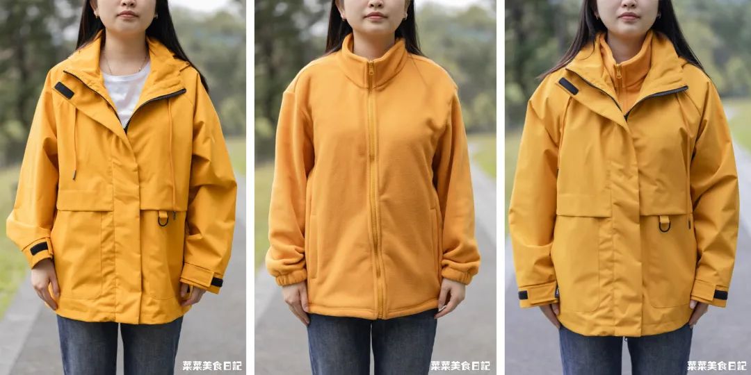 )而现在遇上这降温偶带降雨,冷得人猝不及防的速冻天气。这件衣服那么火,除了神仙姐姐穿着好看,还有一个很重要的原因就是——它实在太宝藏了!好看百搭又保暖,还自带防风防水buff,一件可以贯穿秋、冬、春三季,谁穿谁爱!像现在湿冷的天气,穿啥都感觉风灌进身体,嗖嗖得冷。但有了冲锋衣,就算里面穿件短袖/打底,也能完全抵御魔法攻击!面对突如其来的降雨,帽子一戴就可以保护自己,没带伞也不用慌了!还特别抗造、耐脏,比起不能下水的羽绒服、棉服什么的,简直省心100倍!在穿搭上也是无所不能,搭配难度为0,户外工装风和松弛都市感可以随意切换。工作日可以骑着电动车顶峰冒雨上班,周末还能穿着去郊游上山,亲近大自然!也难怪,务实的北京人民会不约而同的选择它上班通勤。它真就是,自身实力硬,硬到让每一个人都能在它身上发现“真香定律”。就拿我自己来说吧,我还是有一次为了爬山应急才买的,结果现在一穿穿了8年!除了出差、户外爬山穿,下楼买菜、出门散步、甚至雨天冷天上班通勤都在穿······菜粉们对冲锋衣也是爱得深沉,自从跟着我入了坑,每回给大家开团,恨不得给全家都安排上。今天这款集齐了颜值、功能性、实用性,以及超高的性价比,不带走真的亏亿!尤其是这个太阳般的配色,在一眼望过去不是黑就是灰的秋冬季节,一出场就让人眼前一亮!呐,小红书上入了同款的姐妹,po出来的美照,美得都很震撼!皮肤不白的姐妹,也千万别被这个鲜艳的颜色劝退,不然你真的会错过很多惊喜!咱们黄黑皮同事本来也觉得自己穿会显黑,结果试过之后秒种草:穿上不仅不显黑,反而能提亮、显白,精气神看着都变好了!她已经提前预定了一件,等着休假的时候去环游大西北了!ps:除了这个向日葵色,还有白色、黑色,男女同款,可以给对象、爸妈选一件哦!不止好看,这款还是3合1面料,防风、防污、防水、防磨,实用性也拉满。不管上山还是上班,出海还是入疆/入藏,它都是不二之选!更何况,里面还自带可拆卸的摇粒绒内胆,可以根据温度来选择不同的穿法:花一件衣服的钱,就相当于拥有:时髦外套+户外运动服+羽绒服+雨衣+万能内搭,超值啊!这次我们挖到的这个工厂平时是给大牌代工的(如ka*pa),出品即是品牌专柜品质!