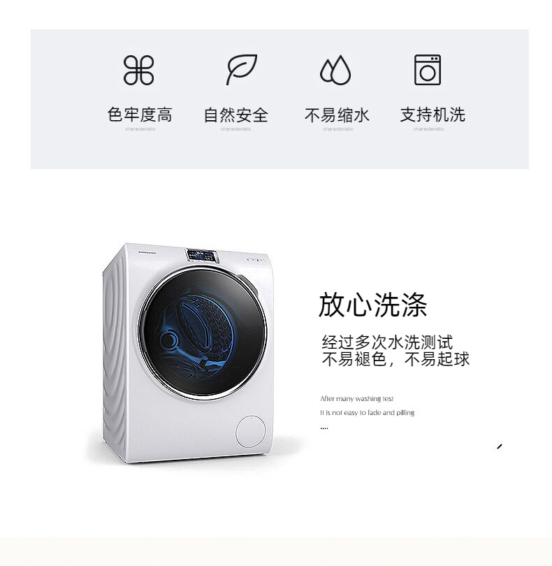 而且还不易霉变、生螨、平时也方便清洗、直接扔入洗衣机,就跟洗床单被套一样,直接晾干即可。