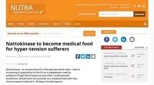 《纳豆激酶已成为美国高血壓患者的医療食品》