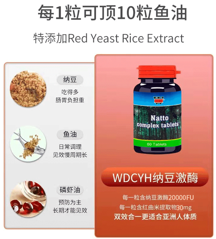 威氏纳豆复合片,除了核心的纳豆激酶,还加入红曲米,溶血栓、养血管、净血液一步到位,調理效果犹如“换血管”!