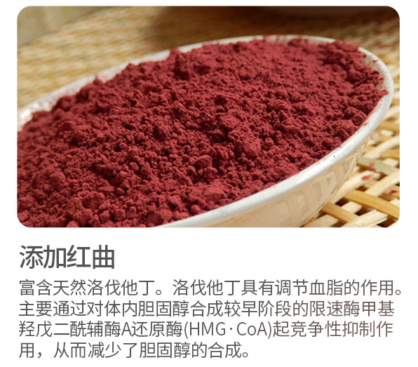 此外还添加了红曲米提取物,富含“天然血管医生”的红曲霉素。