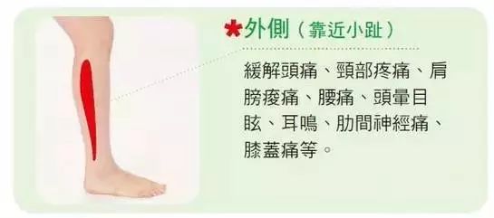 身体某些部位的不适的话,也可以按摩对应的小腿部位来调理。基本是分为内侧、中侧、外侧,对应这些位置进行按摩。例如,身体比较冰冷的人,就应该有意识地去按摩小腿内侧。而如果是头痛、腰痛的话,就应该去好好按摩一下小腿的外侧和小腿中央的两侧。