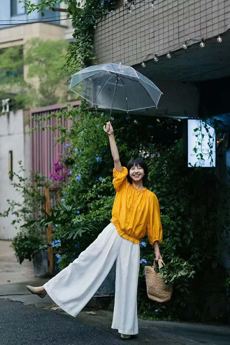 草木生长的夏日也遮不住黄色的明媚,随便搭配一条白裤子就足够好看啦
