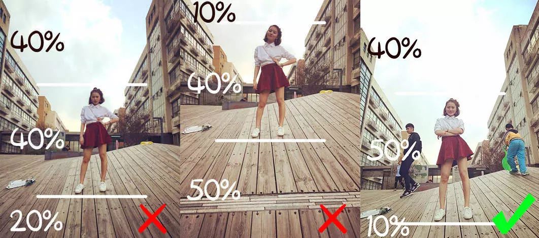 所以,在总结上面失败案例的基础上,要把脸拍小、腿拍长、胸拍大,首先你得重视构图。