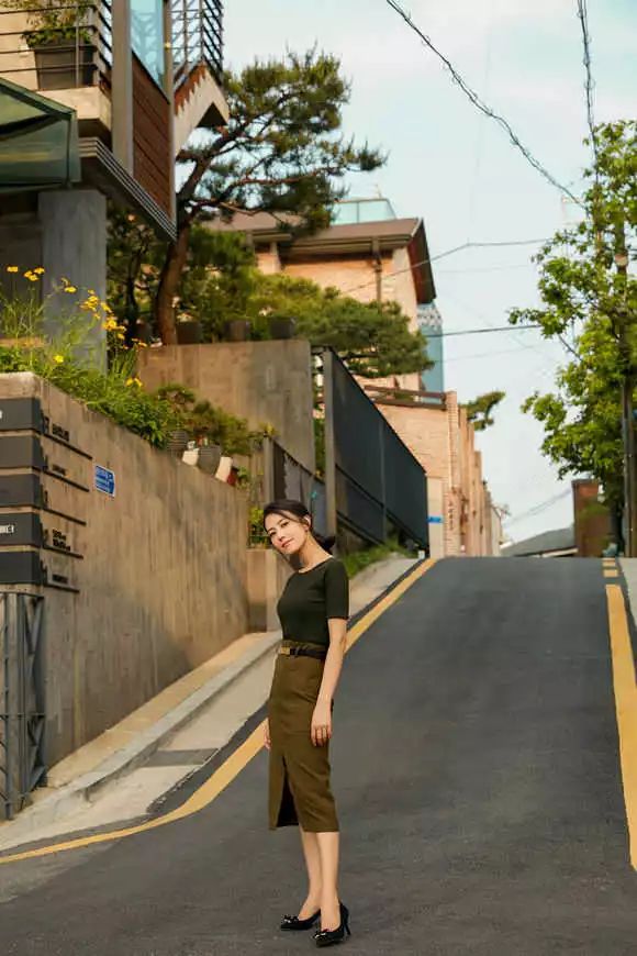 如果要侧身拍照的话,可以尝试歪一下头,这样不容易显呆板和僵硬。