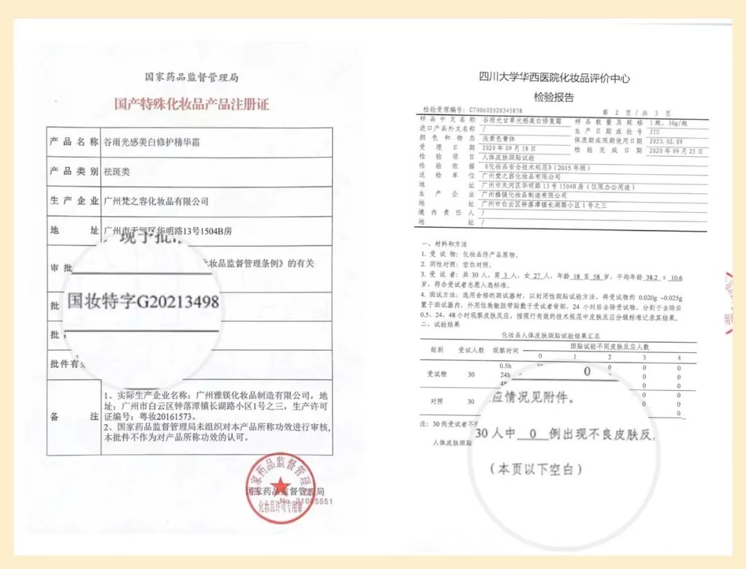 ▲持有国家美白祛斑特证和四川大学华西医院 0 致敏报告