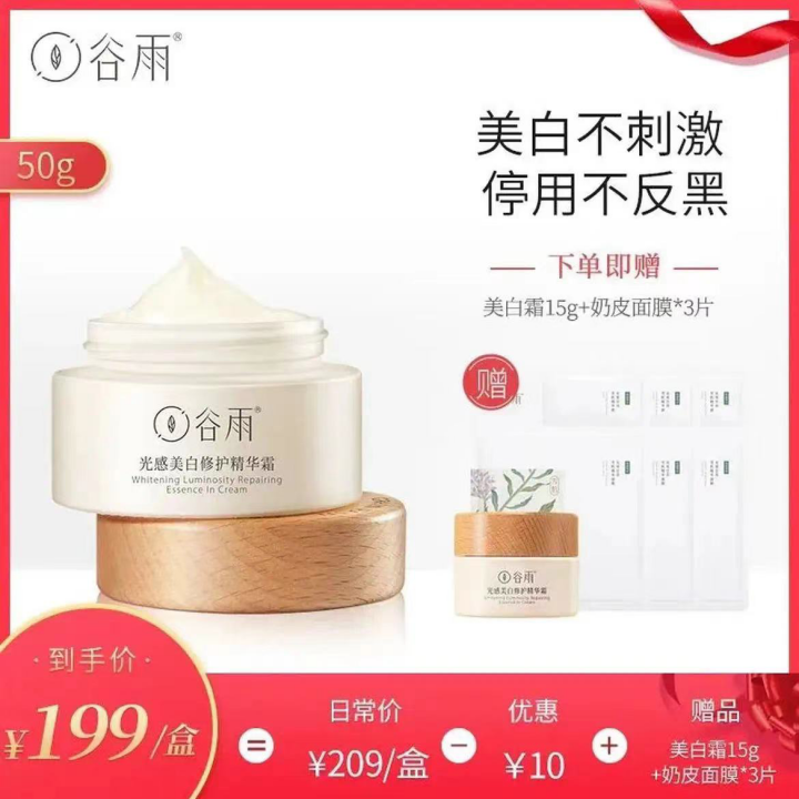 368元/50g*2,买即送美白霜7g*4+光感精华5ml*2+奶皮面膜2片;