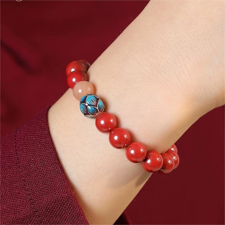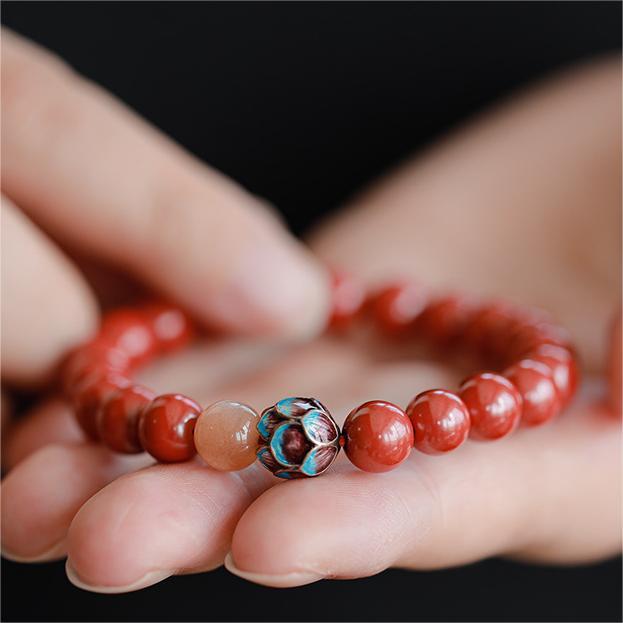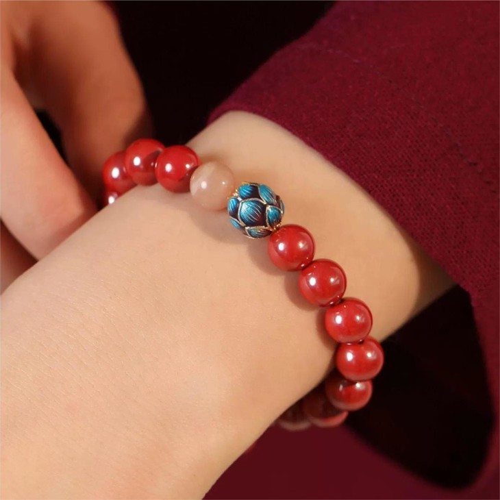 主珠是一颗景泰烧蓝莲花,寓意好运连连、一定上岸