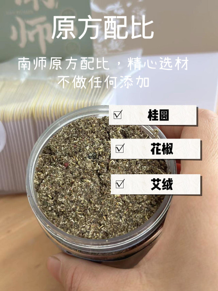 (花椒用花椒香精,桂圆用果脯,艾粉都是灰粉,打艾绒剩的艾灰)