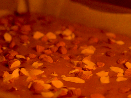 5.表面撒上少许坚果,放烤箱中层,上下火170度烤制20分钟即可