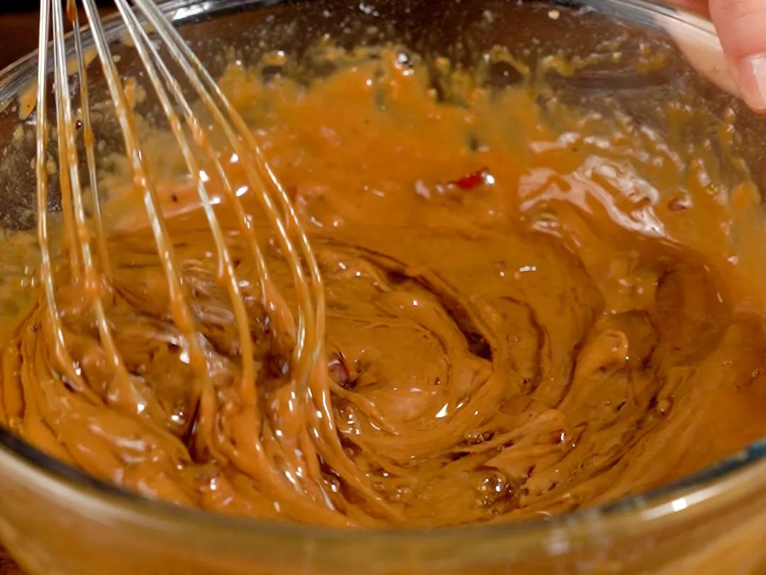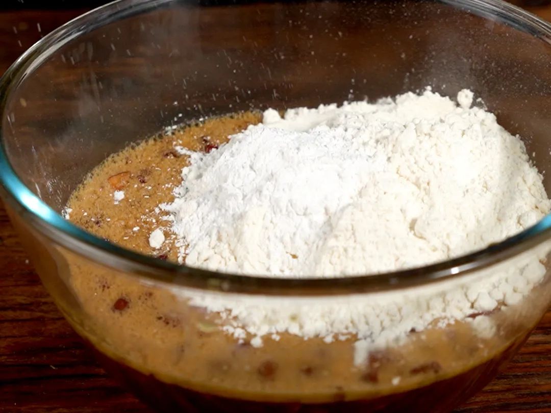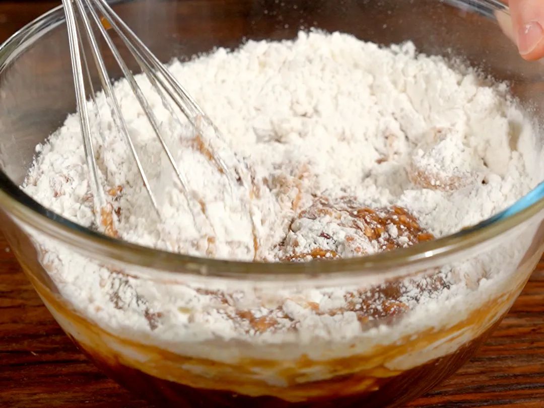 3.加入低筋粉,泡打粉,小苏打搅拌至没有干粉