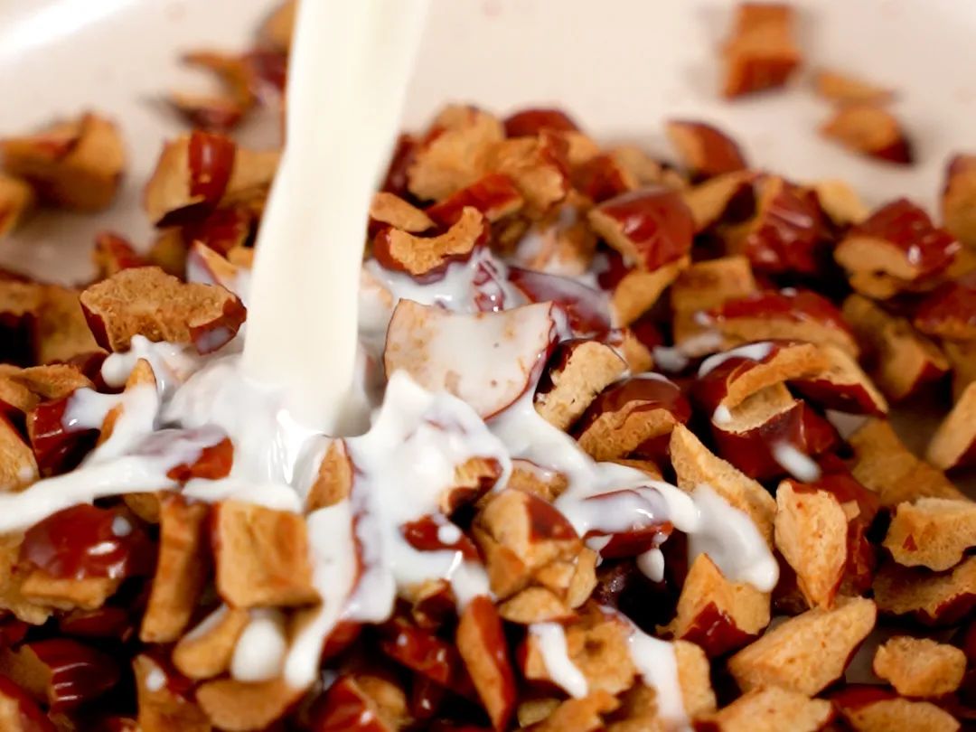 1.将大枣去核剪成颗粒状,倒入锅中,加入牛奶