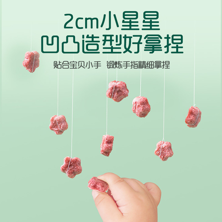 Q萌星星造型搭配水果的缤纷色彩,让英氏忆格这款水果溶豆的颜值非常能打!而且,星星造型不仅仅是好看,还很适合孩子锻炼小手手的抓握、拿捏,有助于宝贝精细动作的训练。