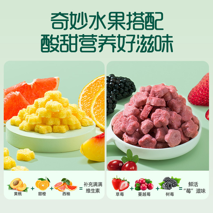 相比于自己做溶豆,筛选合适的食材难度极大,规范生产的水果溶豆,可以实现更优质的食材筛选,还能将不同的水果进行组合搭配,给宝宝提供更丰富的味觉体验,增添成长好滋味。