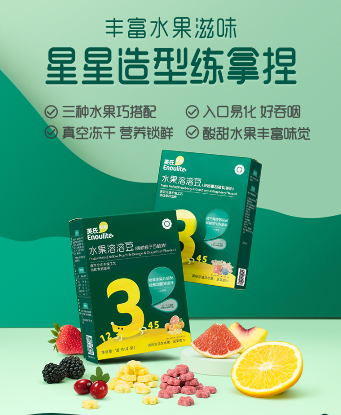 英氏忆格这款水果溶豆,配方里特别添加对肠道有益的多种乳杆菌,宝宝更好吸收,做父母的给孩子吃起来自然也更放心。